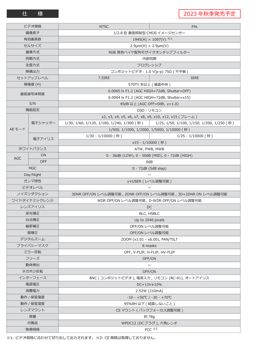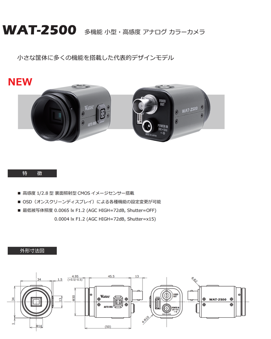 NEW WAT-2500 1/2.8型 多功能 小型·高感度 模拟 彩色相机